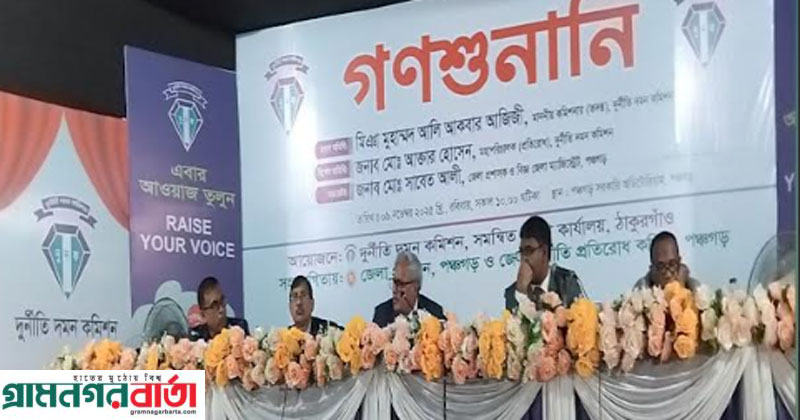 আগে দেশের সরকার প্রধান থেকে শুরু করে বিচার প্রধান, বায়তুল মোকাররমের খতিব থেকে শুরু করে ঢাকেশ্বরী মন্দিরের পুরোহিত দুর্নীতিতে রসগোল্লার মতো ডুবে ছিলো বলে এমনটা মন্তব্য করেছেন দুর্নীতি দমন কমিশনের কমিশনার (তদন্ত) মিঞা মুহাম্মদ আলি আকবর আজিজী। রবিবার পঞ্চগড় সরকারি অডিটোরিয়ামে দিনভর গণশুনানি আয়োজনে এ কথা বলেন তিনি। এ সময় তিনি বলেন, আপনাদের যুবক সন্তানেরা জীবন বাজি রেখে পথে নেমেছিল এবং অন্যায়ের প্রতিকার করেছে। এতো দুর্নীতির অভিযোগ এসেছে যে এখন আমরা সন্ধ্যা আগে বাড়ি ফিরতে পারি না।
