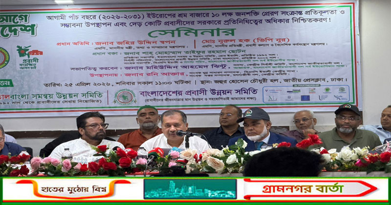 আজ (শনিবার) দুপুরে জাতীয় প্রেসক্লাবের জহুর হোসেন চৌধুরী হলে ‘ইউরোপীয় শ্রমবাজারে ১০ লাখ দক্ষ জনশক্তি: মাস্টারপ্ল্যান (২০২৬-২০৩১) উপস্থাপন এবং প্রবাসীদের রাষ্ট্রীয় অধিকার নিশ্চিতকরণ’ শীর্ষক সেমিনারে প্রধান অতিথির বক্তব্যে তিনি এ কথা বলেন।