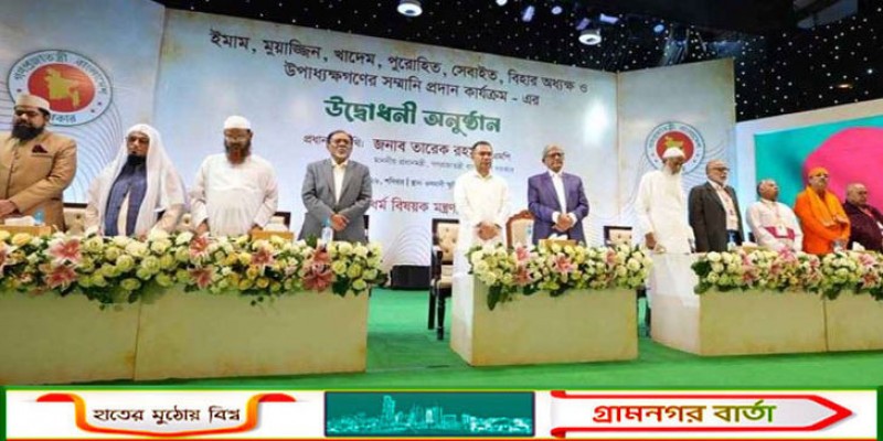 দেশের ধর্মীয় সম্প্রীতি ও সামাজিক নিরাপত্তার এক অনন্য মাইলফলক হিসেবে ইমাম, মুয়াজ্জিন এবং বিভিন্ন ধর্মের ধর্মীয় নেতাদের সরকারি সম্মানি প্রদান কার্যক্রমের শুভ উদ্বোধন করেছেন প্রধানমন্ত্রী তারেক রহমান।