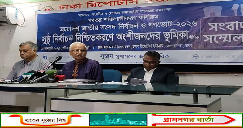 সুজনের সম্পাদক বলেন, নির্বাচন কমিশন যদি এখনই আইন কঠোরভাবে প্রয়োগ না করে এবং অসহিষ্ণুতা ও সহিংসতা নিয়ন্ত্রণে না আনে, তাহলে এবারের নির্বাচনও বিতর্কিত হতে বাধ্য। এ ক্ষেত্রে রাজনৈতিক দল, প্রার্থী, নির্বাচন কমিশন ও সরকারকে দায়িত্বশীল ভূমিকা রাখতে হবে। গণতান্ত্রিক সহাবস্থানের সংস্কৃতি প্রতিষ্ঠা না হলে জনগণের প্রত্যাশিত সুষ্ঠু নির্বাচন সম্ভব নয়।