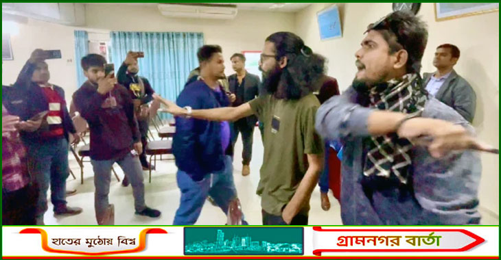 এর আগে গত সোমবার বিকালে রাজশাহীতে এনসিপির জেলা কমিটির সংবাদ সম্মেলনে যাওয়া সাংবাদিকদের কক্ষে তালা মেরে আটকে রাখার হুমকি দেন জাতীয় যুবশক্তির ওই দুই নেতা। সেদিন এনসিপির জেলা কমিটি গঠনের পর আহ্বায়ক ও কমিটির অন্য সদস্যরা সংবাদ সম্মেলনের আয়োজন করেন। নতুন কমিটির আহ্বায়ককে ‘আওয়ামী লীগের দোসর’আখ্যা দিয়ে বাইরে আরেকটি অংশ বিক্ষোভ শুরু করে। সংবাদ সম্মেলন চলাকালে একপর্যায়ে বাইরে থেকে ওই দুই জন এসে সাংবাদিকরা বের না হলে কক্ষে আটকে রাখার হুমকি দেন।