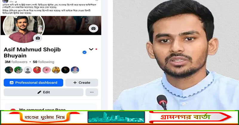 তিনি উল্লেখ করেন, ‘ওসমান হাদি ভাই সংশ্লিষ্ট সকল পোস্ট, ভিডিওতে স্ট্রাইক এবং সংঘবদ্ধ রিপোর্ট করে আমার অফিশিয়াল পেজটি (৩০ লক্ষাধিক ফলোয়ার) রিমুভ করে দেওয়া হয়েছে।’