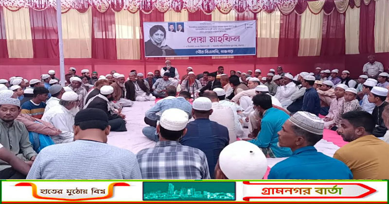 বিএনপির চেয়ারপান ও ৩ বারের সাবেক সফল প্রধানমন্ত্রী আপসহীন দেশনেত্রী বেগম খালেদা আশু রোগমুক্তি ও সুস্থতা কামনায় দোয়া মাহফিল অনুষ্ঠিত হয়েছে। আজ বুধবার বিকেলে সরকারি অডিটোরিয়াম মুক্তমঞ্চে পৌর বিএনপি এ দোয়া মাহফিলের আয়োজন করেন। এসময় জেলা বিএনপির আহবায়ক জাহিরুল ইসলাম কাচ্চু, পৌর বিএনপির আহবায়ক ও জেলা বিএনপির যুগ্ম আহবায়ক তৌহিদুল ইসলাম, পৌর বিএনপির সদস্য আব্দুল বারি, সদস্য আব্দুল্লাহ আল মামুন রনিক, জেলা জাসাস নেতা ইউনুস শেখ, পৌর বিএনপির নেতা-কর্মী, বিভিন্ন মসজিদের আলেম ওলামা ও বিভিন্ন এতিমখানার শিক্ষার্থীরা দোয়া মাহফিলে অংশগ্রহন করেন। দোয়া মাহফিল পরিচালনা করেন কেন্দ্রীয় মসজিদের খতিব মুফতি আ, ন, ম আব্দুল করিম।