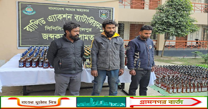 জামালপুরে ১৩ শতাধিক বোতল বিদেশী মদসহ ৩ জন গ্রেফতার