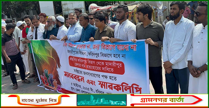 ঢাকা বিভাগ থেকে মাদারীপুরকে আলাদা করার প্রতিবাদে মানববন্ধন