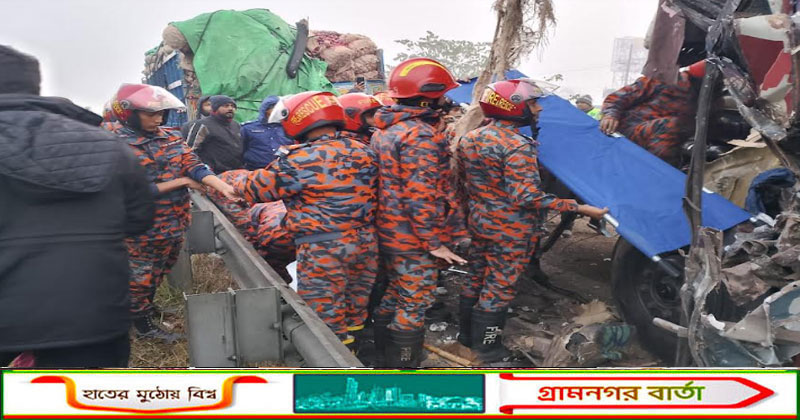 ঢাকা-মাওয়া এক্সপ্রেসওয়ে ট্রাকের পেছনে বাসের ধাক্কা, প্রাণ গেলো সুপারভাইজারের