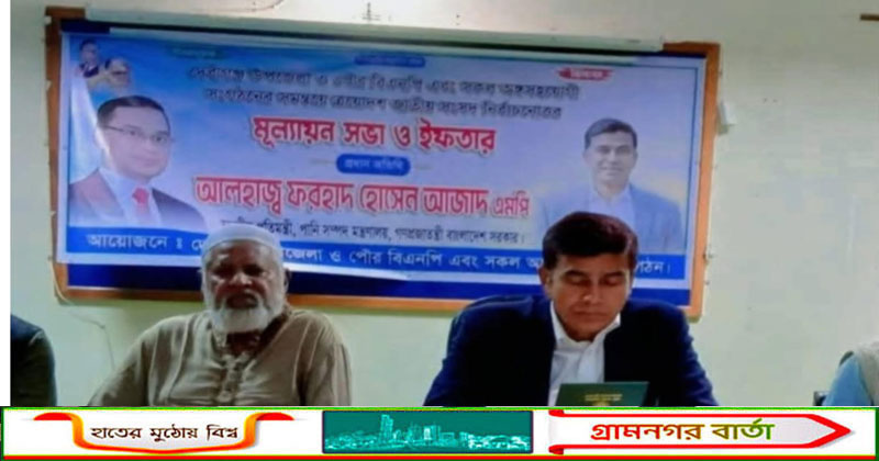 পঞ্চগড়ের দেবীগঞ্জ উপজেলা ও পৌর বিএনপি এবং সকল অঙ্গ ও সহযোগী সংগঠনের সমন্বয়ে ত্রয়োদশ জাতীয় সংসদ নির্বাচনোত্তর মূল্যায়ন সভা ও ইফতার অনুষ্ঠিত। অতিথি হিসেবে উপস্থিত ছিলেনপানি সম্পদ মন্ত্রণালয়ের প্রতিমন্ত্রী এমপি ফরহাদ হোসেন আজাদ। দেবীগঞ্জ পৌর শহরে সরকারি টেকনিক্যাল স্কুল অ্যান্ড কলেজ হলরুমে আয়োজিত এ মতবিনিময় সভা ও ইফতার মাহফিল বৃহস্পতিবার (২৬ ফেব্রুয়ারি) সন্ধ্যায় অনুষ্ঠিত হয়।
