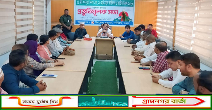 বগুড়ার নন্দীগ্রামে ২৫ মার্চ গণহত্যা দিবস ও ২৬ মার্চ মহান স্বাধীনতা ও জাতীয় দিবস উদযাপন উপলক্ষ্যে উপজেলা প্রশাসনের উদ্যোগে প্রস্তুতিমূলক সভা অনুষ্ঠিত হয়েছে।সোমবার (১৬ মার্চ) সকালে উপজেলা পরিষদ সভাকক্ষ ভদ্রাবতীতে উপজেলা নির্বাহী কর্মকর্তা শারমিন আরার সভাপতিত্বে এ সভা অনুষ্ঠিত হয়।
