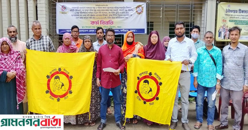 বাংলাদেশ হেলথ এসিস্ট্যান্ট অ্যাসোসিয়েশন ষোষিত কর্মসূচির অংশ হিসেবে ছয় দফা দাবি আদায়ের লক্ষ্যে সারাদেশের ন্যায় বগুড়ার নন্দীগ্রামেও গত বুধবার থেকে অনিদিষ্টকালের কর্মবিরতি শুরু করেছেন স্বাস্থ্য সহকারীরা।
