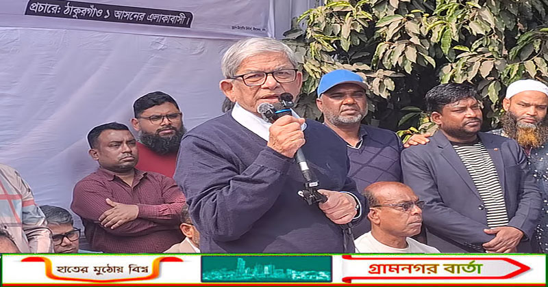 আজ মঙ্গলবার বেলা সাড়ে ১১টার দিকে ঠাকুরগাঁও পৌরসভার ৬ নম্বর ওয়ার্ডে এক নির্বাচনী সভায় মির্জা ফখরুল এ কথা বলেন।ঠাকুরগাঁও-১ (সদর) আসনে বিএনপির সংসদ সদস্য প্রার্থী মির্জা ফখরুল ইসলাম আলমগীরের সমর্থনে শহরের পৌর কমিউনিটি সেন্টারে এ সভার আয়োজন করে ঠাকুরগাঁও পৌর বিএনপি।