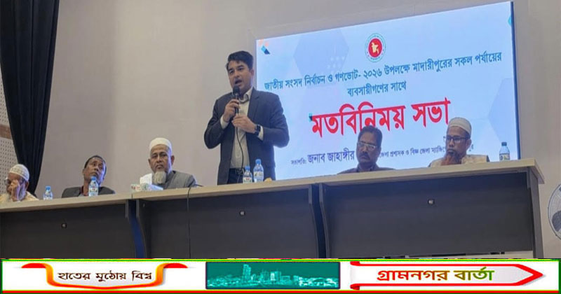 জাতীয় সংসদ নির্বাচন ও গণভোট ২০২৬ উপলক্ষে মাদারীপুরে সকল পর্যায়ের ব্যবসায়ী নেতৃবৃন্দের সাথে এক মতবিনিময় সভা অনুষ্ঠিত হয়েছে।মঙ্গলবার (২০ জানুয়ারি) জেলা প্রশাসনের উদ্যোগে জেলা সমন্বিত অফিস ভবনের সম্মেলন কক্ষে এ মতবিনিময় সভার আয়োজন করা হয়। সভায় সভাপতিত্ব করেন মাদারীপুরের অতিরিক্ত জেলা প্রশাসক আল নোমান।