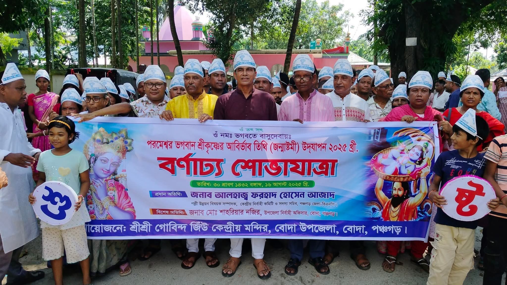 পঞ্চগড়ের বোদা উপজেলায় গোবিন্দ জিউ মন্দিরের আয়োজনে ভগবান শ্রীকৃষ্ণের আবির্ভাব তিথি( জন্মাষ্টমী) উদযাপিত হয়েছে। শনিবার এই অনুষ্ঠানের আয়োজন করা হয়। অনুষ্ঠানের প্রধান অতিথি হিসেবে উপস্থিত ছিলেন বিএনপি কেন্দ্রীয় নির্বাহী কমিটির পল্লী উন্নয়ন বিষয়ক সম্পাদক ফরহাদ হোসেন আজাদ।