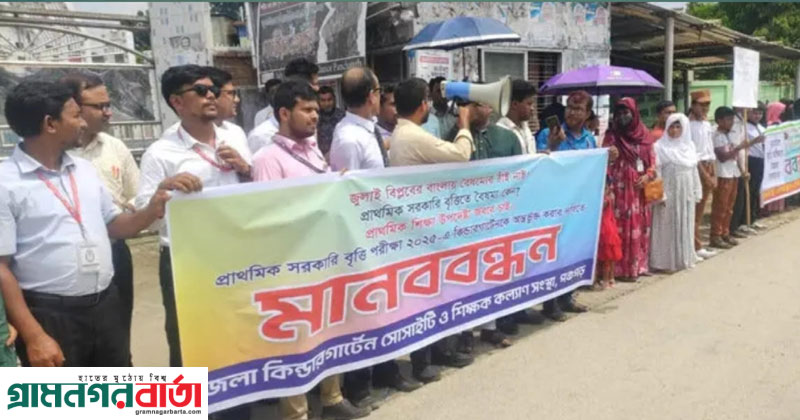 মানববন্ধনে বক্তারা বলেন, প্রাথমিক শিক্ষা অধিদপ্তরের ১৭ জুলাই ২০২৫ তারিখে জারি করা পরিপত্রে সরকারি বিদ্যালয়ের শিক্ষার্থীদের প্রাথমিক বৃত্তি পরীক্ষায় অংশগ্রহণের সুযোগ রাখা হলেও কিন্ডারগার্টেন ও বেসরকারি বিদ্যালয়ের শিক্ষার্থীদের বাইরে রাখা হয়েছে, যা স্পষ্ট বৈষম্য।