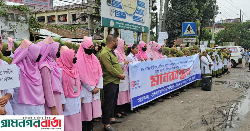 পঞ্চগড়ে ভিন্ন অধিদপ্তরে একিভূত না করার দাবিতে নার্সদের মানববন্ধন