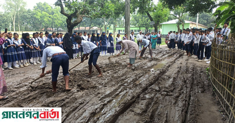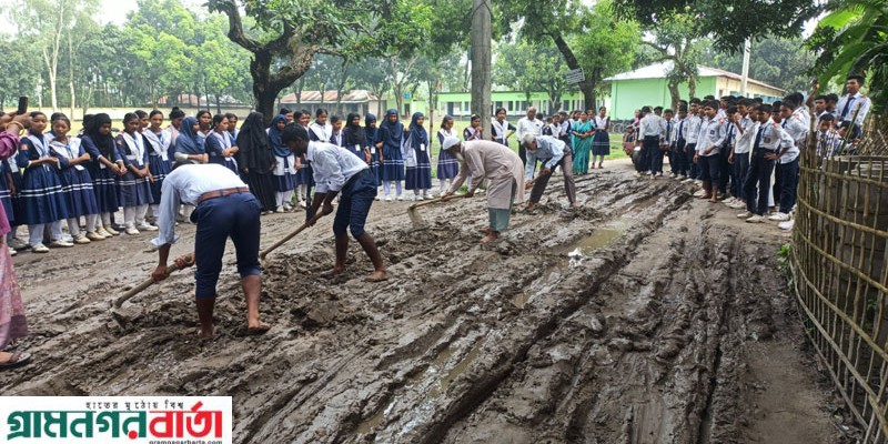 পঞ্চগড়ে সেচ্ছাশ্রমে রাস্তা মেরামত করলো শিক্ষার্থীরা