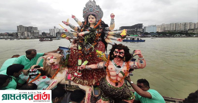 প্রতিমা বির্সজনের মধ্য দিয়ে শেষ হলো শারদীয় দুর্গোৎসব