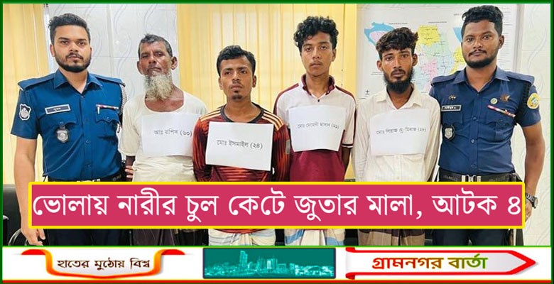 ভোলায় নারীর চুল কেটে জুতার মালা, আটক ৪