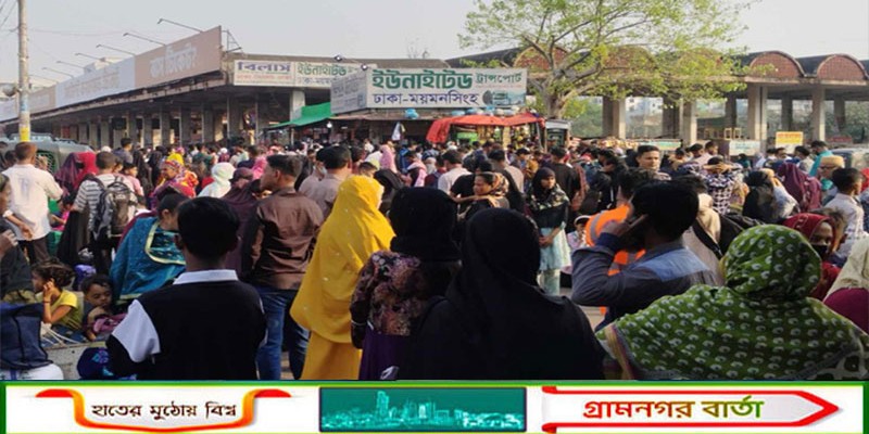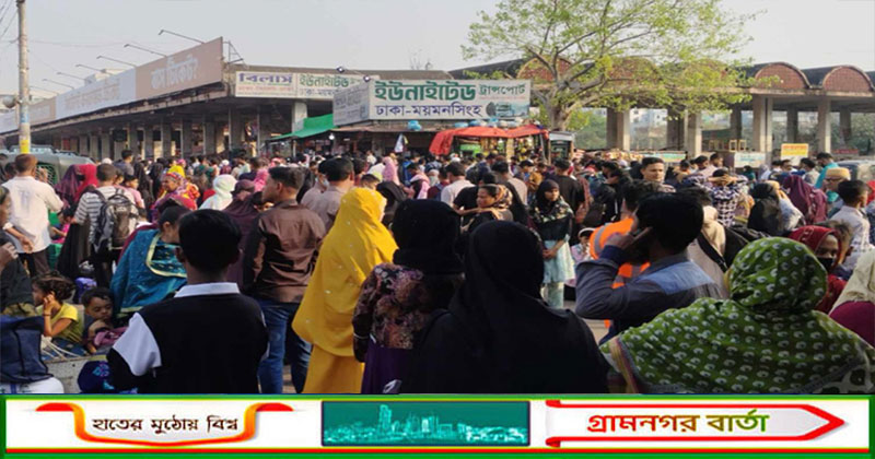 মহাখালী টার্মিনালে ঘরমুখো মানুষের প্রচণ্ড ভিড়, সংকট বাসের, নেই টিকিট