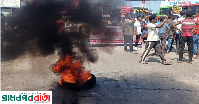 মাদারীপুরে প্রস্তাবিত ফরিদপুর বিভাগে না যাওয়ায় ঢাকা-বরিশাল মহাসড়কে টায়ার জ্বালিয়ে অবরোধ