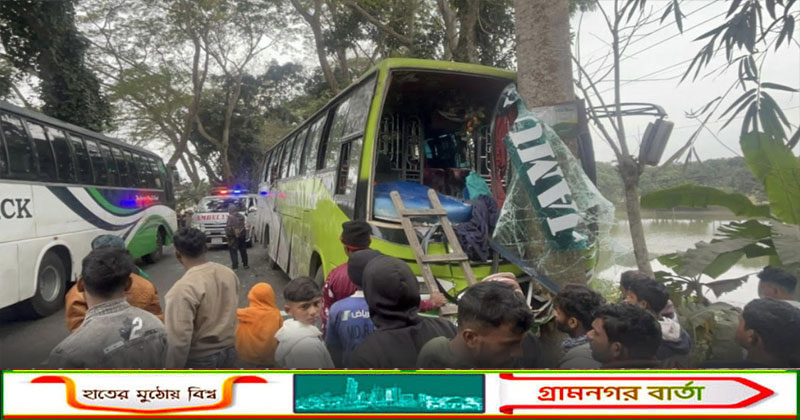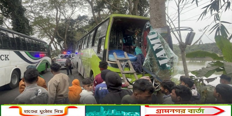 মাদারীপুরে যাত্রীবাহি বাস নিয়ন্নিয়ন্ত্রণ হারিয়ে সাথে ধাক্কা :আহত-১০