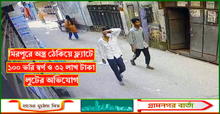 রাজধানীর মিরপুর মাজার রোডে দিনে-দুপুরে একটি ফ্লাট বাসায় অস্ত্র ঠেকিয়ে ১০০ ভরি স্বর্ণালংকার ও ৩২ লাখ টাকা লুটের অভিযোগ উঠেছে।