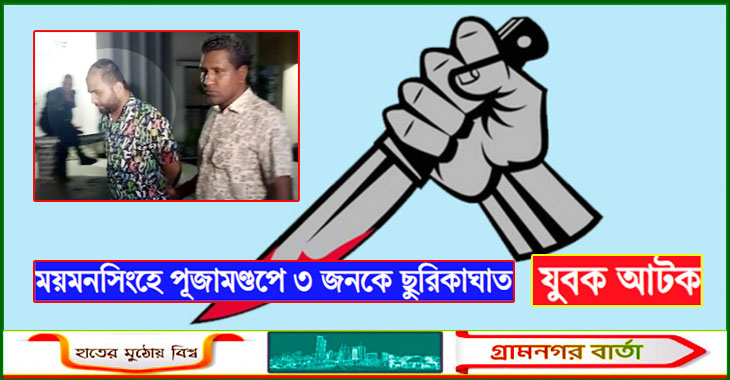 ময়মনসিংহে পূজামণ্ডপে ৩ জনকে ছুরিকাঘাত, যুবক আটক