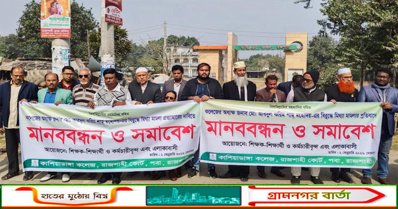 রাজশাহীতে কলেজ অধ্যক্ষের বিরুদ্ধে মামলার প্রতিবাদে মানববন্ধন-সমাবেশ