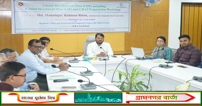 রাজশাহী সিটি কর্পোরেশন এবং রেজিলিয়েন্ট আরবান অ্যান্ড টেরিটোরিয়াল ডেভেলপমেন্ট প্রজেক্ট, এলজিইডির যৌথ আয়োজনে ক্লাস্টার উন্নয়ন ও ক্যাপিটাল বিনিয়োগ পরিকল্পনা বিষয়ক একটি কর্মশালা অনুষ্ঠিত হয়েছে। মঙ্গলবার (২১ এপ্রিল) নগর ভবনের সরিৎ দত্তগুপ্ত নগর সভাকক্ষে এ কর্মশালার আয়োজন করা হয়।কর্মশালায় সভাপতিত্ব করেন রাজশাহী সিটি কর্পোরেশনের প্রশাসক মোঃ মাহফুজুর রহমান রিটন। সভায় তিনি বলেন, মাননীয় প্রধানমন্ত্রী তারেক রহমান নারীদের ক্ষমতায়নে বিশেষ গুরুত্বারোপ করেছেন। ইতোমধ্যে ফ্যামিলি কার্ড বিতরণ কার্যক্রম শুরু হয়েছে এবং তৃণমূল পর্যায়ে নারীদের উন্নয়নে বিভিন্ন কর্মসূচি বাস্তবায়ন করা হচ্ছে। তিনি আরও বলেন, নগর উন্নয়ন কর্মকাÐে নাগরিক সম্পৃক্ততার বিষয়টি এ প্রকল্পে বিশেষভাবে গুরুত্ব পেয়েছে। নাগরিকদের সক্রিয় অংশগ্রহণের মাধ্যমে উন্নয়ন কাজ বাস্তবায়ন একটি ইতিবাচক দৃষ্টান্ত স্থাপন করবে বলে তিনি আশা প্রকাশ করেন। একইসঙ্গে রাজশাহী মহানগরীর সার্বিক উন্নয়নে নগরবাসীর আন্তরিক সহযোগিতা কামনা করেন তিনি। কর্মশালায় উপস্থিত ছিলেন জেন্ডার স্পেশালিস্ট সাজেদা বেগম, সচিব সোহেল রানা, তত্ত¡াবধায়ক প্রকৌশলী (ভারপ্রাপ্ত) আহমদ আল মঈন পরাগ, জুনিয়র সোশ্যাল ম্যানেজমেন্ট স্পেশালিস্ট এমটিএস মেহমুদ, আরবান প্ল্যানার সাইফুর রহমান, সোশ্যাল ম্যানেজমেন্ট স্পেশালিস্ট হাসিবুল হক এবং জুনিয়র এনভায়রনমেন্টাল স্পেশালিস্ট মোঃ আল আমিনসহ সিটি কর্পোরেশন টাউন-লেভেল কোঅর্ডিনেশন কমিটির সদস্য, প্রকল্পের কারিগরি বিশেষজ্ঞ ও সংশ্লিষ্ট পরামর্শকবৃন্দ।#