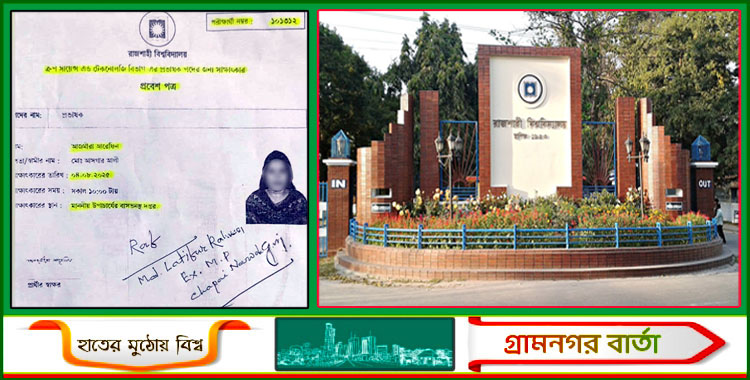 বিশ্ববিদ্যালয়ের ক্রপ সায়েন্স অ্যান্ড টেকনোলজি বিভাগে প্রভাষক পদের ওই প্রার্থীর নাম আজমীরা আরেফীন। তার প্রবেশপত্রে কলমের কালিতে ইংরেজিতে লেখা আছে, ‘রেফারেন্স মো. লতিফুর রহমান, এক্স এমপি, চাঁপাইনবাবগঞ্জ।’