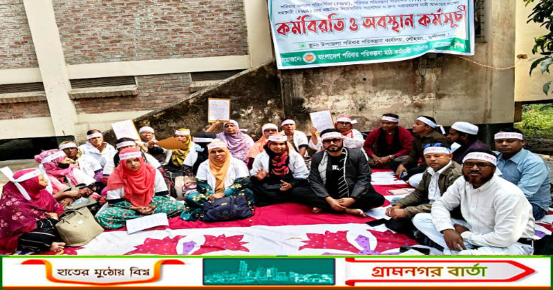 লৌহজংয়ে এক দফা বাস্তবায়নের দাবিতে পরিবার পরিকল্পনা কর্মীদের কর্মবিরতি ও অবস্থান কর্মসূচি পালন
