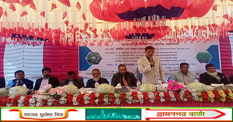 বগুড়া শিবগঞ্জে বাংলাদেশ GAP প্রোটোকল অনুসারে উৎপাদিত বাধাঁকপি ফসলের প্রচার-প্রচারণা অনুষ্ঠান অনুষ্ঠিত। শনিবার ( ১৩ ডিসেম্বর) সকালে মোকামতলা ইউনিয়নের আমজানি গ্রামে বাংলাদেশ কৃষি গবেষণা কাউন্সিল, বাংলাদেশ কৃষি গবেষণা ইনস্টিটিউট এবং কৃষি সম্প্রসারণ অধিদপ্তরের আয়োজনে অনুষ্ঠানে প্রধান অতিথি হিসাবে উপস্থিত ছিলেন কৃষি সম্প্রসারণ অধিদপ্তর বগুড়া অঞ্চলের অতিরিক্ত পরিচালক কৃষিবিদ মোঃ আব্দুল ওয়াদুদ। অনুষ্ঠানে সভাপতিত্ব করেন উদ্যানতত্ত্ব গবেষণা কেন্দ্র ( বিএআরআই) গাজীপুর, সবজি বিভাগের মুখ্য বৈজ্ঞানিক কর্মকর্তাড. মো. উবায়দুল্লাহ কায়ছার। উপজেলা কৃষি অফিসার আব্দুল হান্নান এর সঞ্চালনায় অনুষ্ঠানে বিশেষ অতিথি হিসেবে উপস্থিত ছিলেন মসলা গবেষণা কেন্দ্র, শিবগঞ্জ, বগুড়া এর প্রধান মুখ্য বৈজ্ঞানিক কর্মকর্তা ড. মো. জুলফিকার হায়দার, APD, APCU-PARTNER, BARC এর মুখ্য বৈজ্ঞানিক কর্মকর্তা ড. মো. আশরাফুল আলম, প্রধান বৈজ্ঞানিক কর্মকর্তা, সবজি বিভাগ ড. মো. মাহবুবার রহমান সেলীম, কৃষি সম্প্রসারণ অধিদপ্তর, খামারবাড়ি বগুড়া এর উপপরিচালক কৃষিবিদ সোহেল মো. শামসুদ্দীন ফিরোজ। এ সময় বক্তারা GAP প্রটোকলের মাধ্যমে নিরাপদ ফসল উৎপাদন করে আন্তর্জাতিক বাজারে বাংলাদেশের সবজির সর্বোচ্চ প্রবেশাধিকার উপর গুরুত্ব আরোপ করেন।