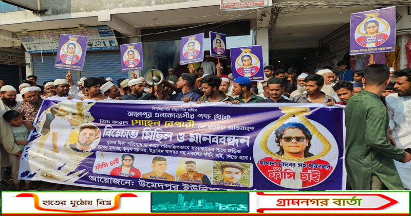 মানববন্ধনে পরিবারের লোকজন ছাড়াও স্থানীয়রা অংশ নেন। এসময় দোষীদের দ্রুত আইনের আওতায় এনে দৃষ্টান্তমুলক শাস্তির দাবি জানান তারা।