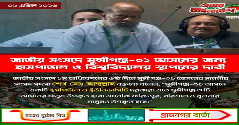জাতীয় সংসদের প্রথম অধিবেশনের ষষ্ঠ দিনে মুন্সীগঞ্জে ম্যাডিকেল কলেজ স্থাপনের বিষয়ে যে বক্তব্য তিনি রেখেছেন, তাতে সামাজিক যোগাযোগ মাধ্যম ( ফেসবুকে) রীতিমত ঝড় শুরু হয়ে গেছে । এ ঝড় এখন ধলেশ্বরী থেকে শুরু হয়ে পদ্মা পাড়ি দিয়ে ওপারেও ধাবিত হচ্ছে দক্ষিণ বঙ্গের ২১ জেলার দিকে লাখো কন্ঠে ধ্বনিত হচ্ছে একটি- ই কথা । সরকারি অর্থব্যায়ে নির্মিত হাসপাতালের সুফল যদি মুন্সীগঞ্জ সহ ২২ জেলার মানুষ ভোগ করতে পারে , তাহলে উপযুক্ত স্থান বিবেচনার অভাবে কেন বঞ্চিত হবে ২১ জেলার মানুষ ? তাই দলমত নির্বিশেষে সবাই আওয়াজ তুলেছে পদ্মা পাড়ের মাওয়া থেকে এক্সপ্রেস ওয়ের ধলেশ্বরীর পাদদেশের মধ্যবর্তি যেকোন স্থান নির্মিত হোক জনবান্ধব হাসপাতাল।