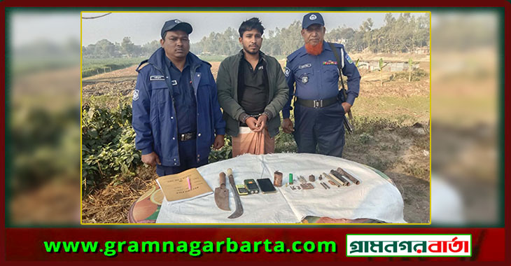 সরিষাবাড়ীতে যৌথ বাহিনীর অভিযানে পিস্তল-চাপাতি সহ যুবক আটক