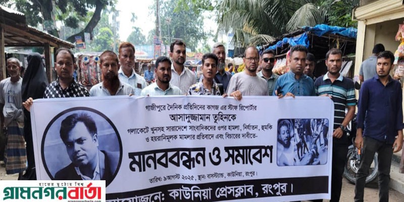 সাংবাদিক তুহিন হত্যার প্রতিবাদে কাউনিয়া প্রেসক্লাবের মানববন্ধন