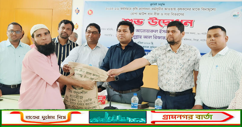 সিংড়ায় ৪ হাজার কৃষকের মাঝে বিনামূল্যে আউশ বীজ ও সার বিতরণ