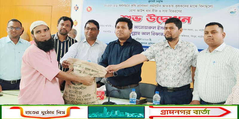 নাটোরের সিংড়ায় ২০২৫-২৬ অর্থবছরের খরিপ-১ মৌসুমে রোপা আউশ উৎপাদন বৃদ্ধির লক্ষ্যে কৃষি প্রণোদনা কর্মসূচির আওতায় উপজেলার ৪ হাজার ক্ষুদ্র ও প্রান্তিক কৃষকদের মাঝে বিনামূল্যে আউশ বীজ ও সার বিতরণ কার্যক্রমের উদ্বোধন করা হয়েছে।