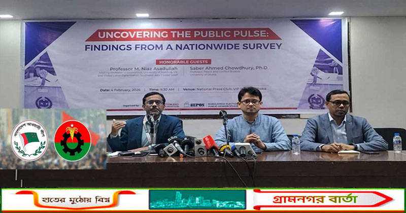 বুধবার [৪ ফেব্রুয়ারি) সকালে এক প্রতিবেদনে এমনই তথ্য তুলে ধরেছে কমিউনিকেশন অ্যান্ড রিসার্চ ফাউন্ডেশন [সিআরএফ)। এদিন রাজধানীর জাতীয় প্রেস ক্লাবে এক সংবাদ সম্মেলনে বাংলাদেশ ইলেকশন অ্যান্ড পাবলিক ওপিনিয়ন স্টাডিজ [বিইপিওএস) যৌথভাবে ‘আনকাভারিং দ্য পাবলিক পালস’ শীর্ষক এ প্রতিবেদন প্রকাশ করে সংগঠনটি।