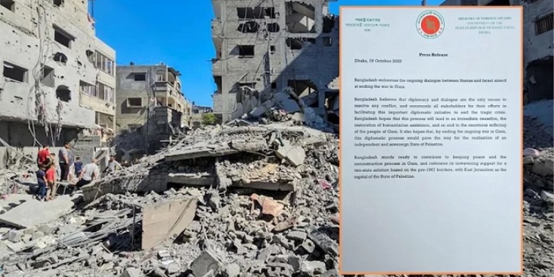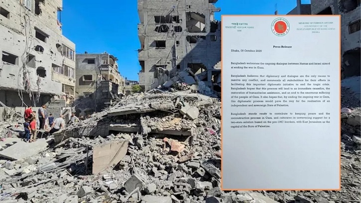গাজায় শান্তি বজায় রাখতে এবং পুনর্গঠন প্রক্রিয়ায় অবদান রাখতে বাংলাদেশ প্রস্তুত বলে সংবাদ বিজ্ঞপ্তিতে বলা হয়। ১৯৬৭ সালের পূর্ববর্তী সীমান্তের অনুসরণে দ্বিরাষ্ট্রভিত্তিক সমাধানের প্রতি অটল সমর্থন পুনর্ব্যক্ত করেছে ঢাকা। আর পূর্ব জেরুজালেম হবে ফিলিস্তিন রাষ্ট্রের রাজধানী।