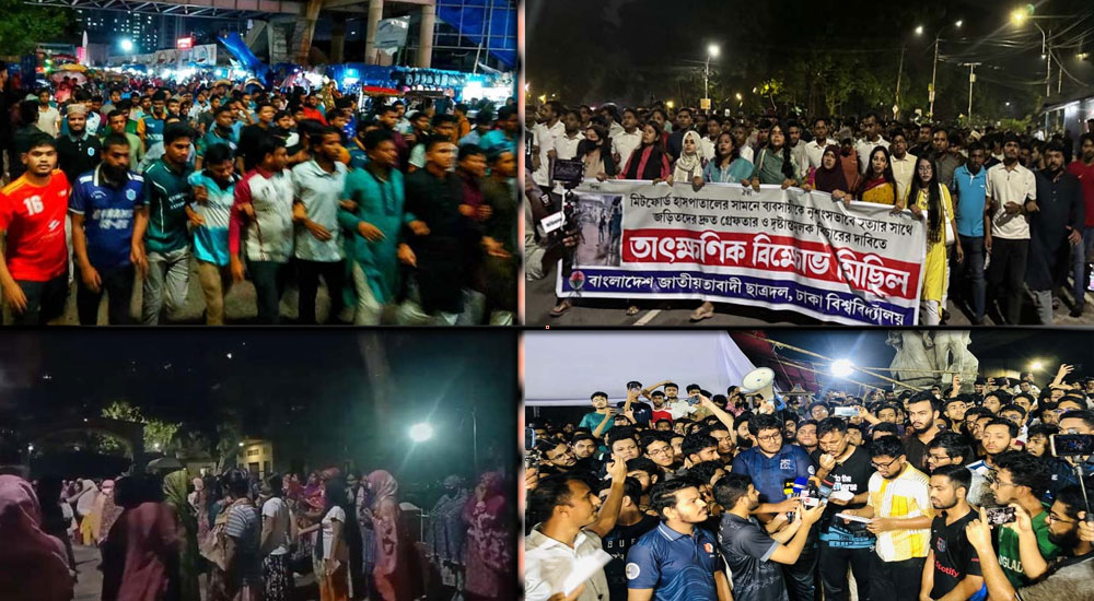 এর আগে রাত ১০টা থেকে বিশ্ববিদ্যালয়ের সেকেন্ড গেটে শিক্ষার্থীরা জড়ো হতে থাকেন। পরে তারা বিশ্ববিদ্যালয়ের সেকেন্ড গেট থেকে বিক্ষোভ মিছিল শুরু করেন।