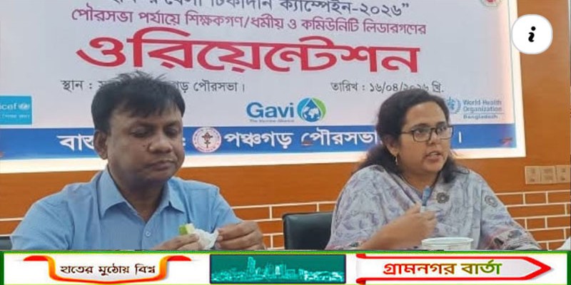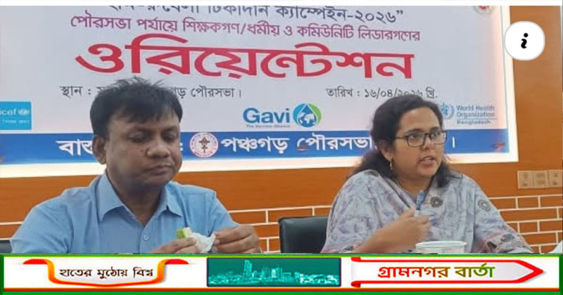 হাম-রুবেলা টিকাদান ক্যাম্পেইন উপলক্ষ্যে পঞ্চগড়ে ওরিয়েন্টেশন সভা অনুষ্ঠিত হয়েছে। পৌরসভা পর্যায়ে শিক্ষক, ধর্মীয় ও কমিউনিটি লিডাররা এই ওরিয়েন্টেশন সভায অংশ নেন। পঞ্চগড় পৌরসভার আয়োজনে বৃহস্পতিবার দুপুরে পৌরসভা সভা কক্ষে এই সভা অনুষ্ঠিত হয়। আগামী ২০ এপ্রিল থেকে হাম-রুবেলার টিকা প্রদান শুরু হবে বলে জানিয়েছেন সংশ্লিষ্টরা। পঞ্চগড়ে ১ লাখ ২০ হাজার শিশুকে হাম এবং রুবেলা রোগের টিকা প্রদান করা হবে। অতিরিক্ত জেলা প্রশাসক ও পৌর প্রশাসক সীমা শারমিন সভায় সভাপতিত্ব করেন। এসময় বক্তব্য রাখেন সিভিল সার্জন মিজানুর রহমান, জেলা কৃষি সম্পসারন অধিদপ্তরের উপ পরিচালক আব্দুল মতিন বক্তব্য রাখেন। আগামী ১০ মে পর্যন্ত এই কর্মসূচী অব্যাহত থাকবে বলে জানান সিভিল সার্জন।