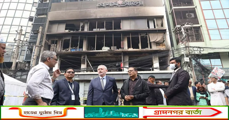 ইউরোপীয় ইউনিয়নের রাষ্ট্রদূত মাইকেল মিলার হামলা ও অগ্নিসংযোগে ভস্মীভূত প্রথম আলো ভবনের সামনে অবস্থান করেন। তিনি সেখানকার পরিস্থিতি পর্যবেক্ষণ করেন। আজ রোববার দুপুরে রাজধানীর কারওয়ান বাজারে