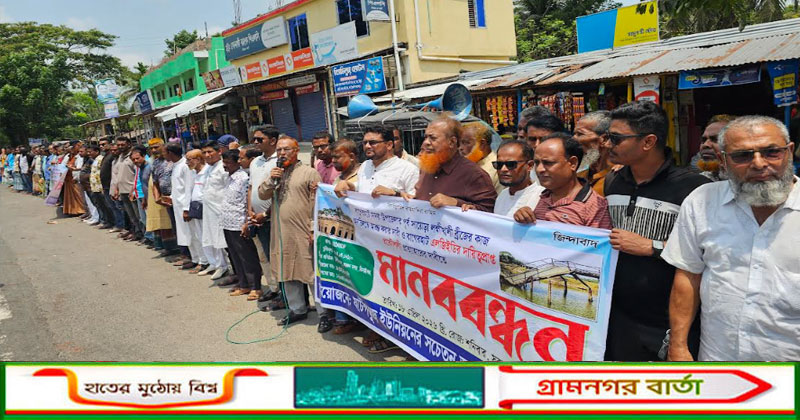 বাগেরহাটে ব্রিজ নির্মাণের দাবিতে মানববন্ধন