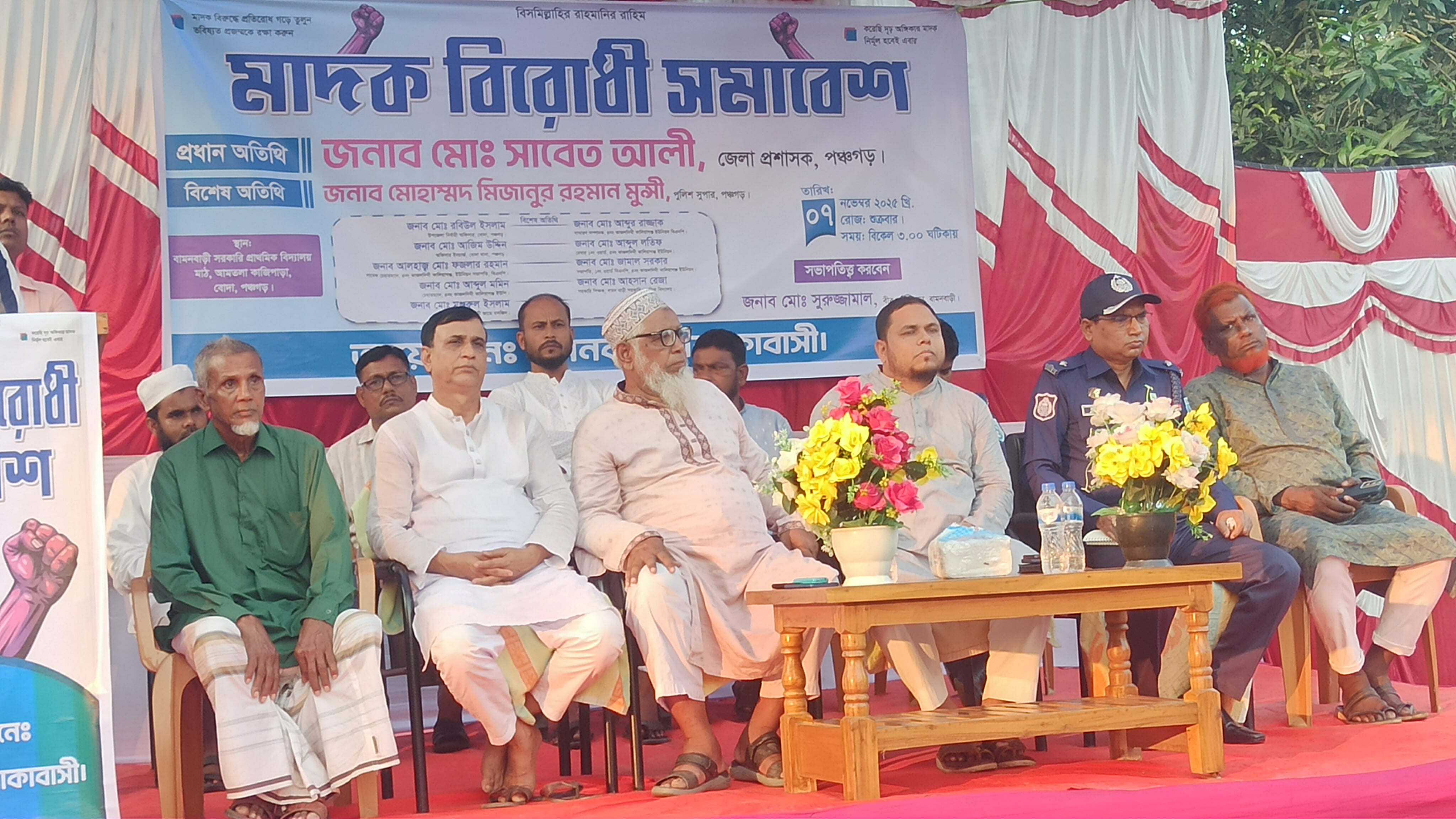 :পঞ্চগড়ের বোদা উপজেলার বামনবাড়ি এলাকায় রমরমা মাদকের বাণিজ্যর প্রতিবাদে ও প্রতিকারের দাবিতে অতিষ্ঠ গ্রামবাসীর মাদক বিরোধী সমাবেশ অনুষ্ঠিত হয়েছে। শুক্রবার বিকেলে উপজেলার কাজলদিঘী কালিয়াগঞ্জ ইউনিয়নের বামনবাড়ি সরকারি প্রাথমিক বিদ্যালয় মাঠে বামনবাড়ি টাইগার ক্লাব ও এলাকাবাসীর আয়োজনে অনুষ্ঠিত সমাবেশে প্রধান অতিথি হিসেবে উপস্থিত হয়ে বক্তব্য রাখেন বোদা উপজেলার নির্বাহী কর্মকর্তা রবিউল ইসলাম।