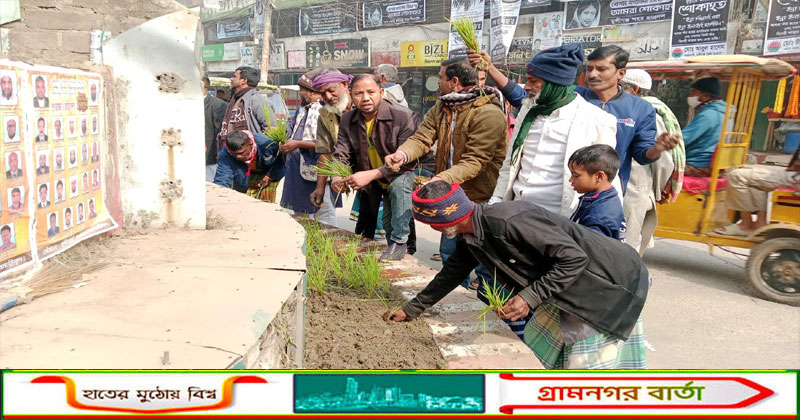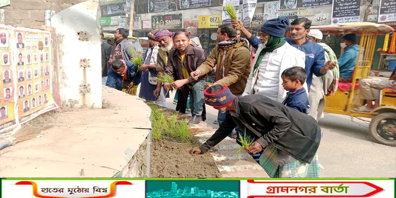 মুন্সীগঞ্জের সুপারমার্কেট সংলগ্ন গোল চত্তরে জাতীয়তাবাদী দল বিএনপির ৩ আসনের প্রার্থী কামরুজ্জামান রতনের কর্মী সমর্থনে ধানের চারা রোপন।
