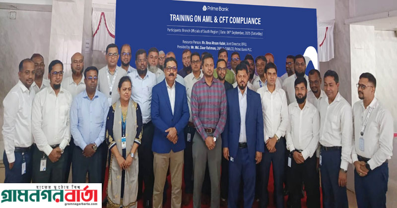 ঢাকা, ২৯ সেপ্টেম্বর, ২০২৫: যশোরে প্রাইম ব্যাংক পিএলসি. আয়োজিত মানি লন্ডারিং প্রতিরোধ (AML) ও সন্ত্রাসে অর্থায়ন প্রতিরোধ (CFT) বিষয়ক একদিনব্যাপী প্রশিক্ষণ অনুষ্ঠিত হয়েছে। সম্প্রতি ব্যাংকের AML & CFT ডিভিশন, দক্ষিণাঞ্চলীয় আঞ্চলিক কার্যালয় ও যশোর শাখার যৌথ উদ্যোগে এ কর্মসূচির আয়োজন করা হয়।
