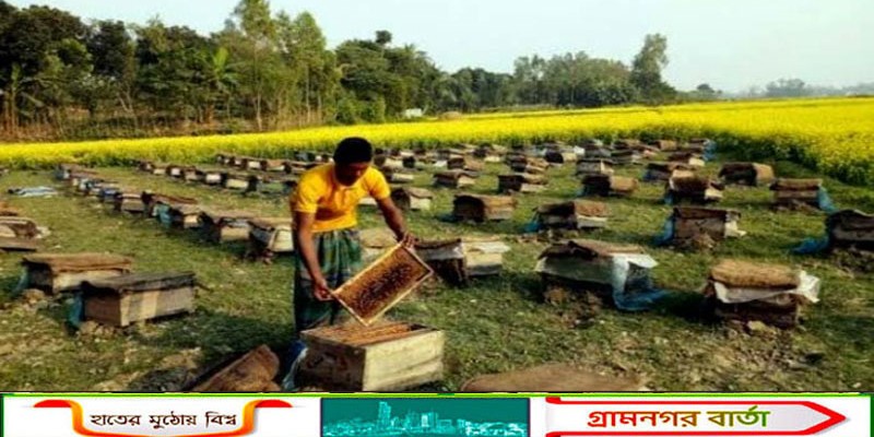 রাজশাহীতে সরিষার ফুল থেকে মধু সংগ্রহে ব্যস্ত চাষিরা