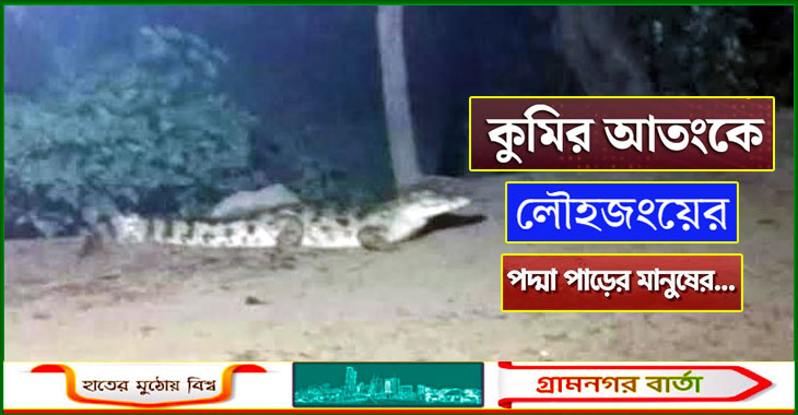 মুন্সীগঞ্জের লৌহজং উপজেলার গাঁওদিয়া ইউনিয়নের শামুরবাড়ি গ্রামে লোকালয়ে কুমির দেখা গেছে। নদী থেকে রাতের আঁধারে পদ্মা তীরবর্তী লোকালয়ে কুমির উঠে আসায় আতঙ্কিত হয়ে পড়েছেন পদ্মাপাড়ের বাসিন্দারা। নদী তীরবর্তী শামুরবাড়ি গ্রামের বাসিন্দাদের দাবি, পুকুর পাড়ে একটি কুমির দেখেছেন তারা। এতে আতঙ্কের মধ্যে দিন পার করছেন ওই এলাকার মানুষ৷ এদিকে কুমির দেখতে পুকুর পারে ভিড় করছে স্কুলের শিক্ষার্থীসহ বিভিন্ন এলাকার মানুষ।