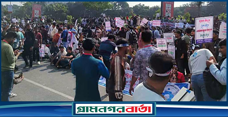 রোববার (৭ ডিসেম্বর) বেলা ১১টা ৪৫ মিনিটের দিকে শাহবাগ মোড় অবরোধ করেন তারা।