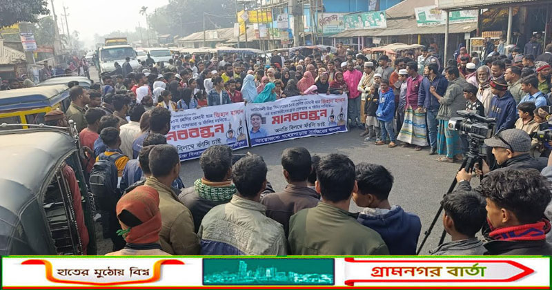 শিক্ষার্থী জিহাদের হত্যাকারীদের গ্রেফতার ও শাস্তির দাবীতে জামালপুরে সড়ক অবরোধ করে মানববন্ধন